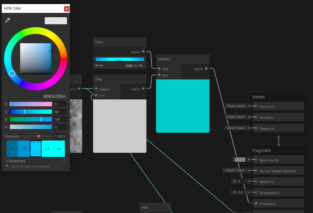 step와 나타내고 싶은 칼라(HDR)곱해서 Emission으로