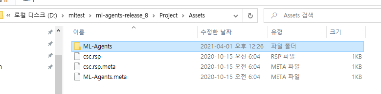 D:\mltest\ml-agents-release_8\Project\Assets\ML-Agents 폴더를