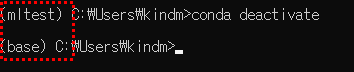 콘솔창에 보면 (base)라는 표식이 존재하고 있습니다. 우리는 현제 base 루트 환경에서 작업 중입니다.