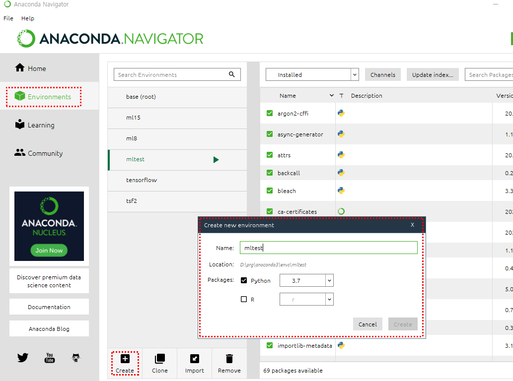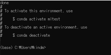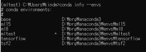 이전 예제에서 mltest 라고 폴더를 만들었으니 가상환경 이름도 mltest 라고 만들도록 하겠습니다.