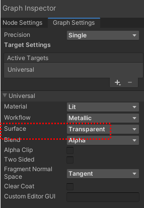 Graph inspector에서 Surface를 Transparent로 변경