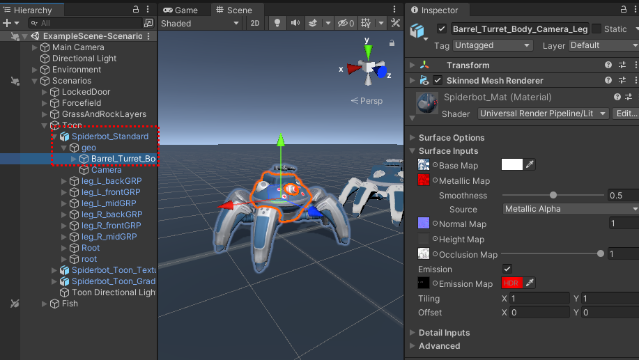 Spiderbot_Standard>>Barrel_Turret_Body_Camera_Leg_Shin_Foot