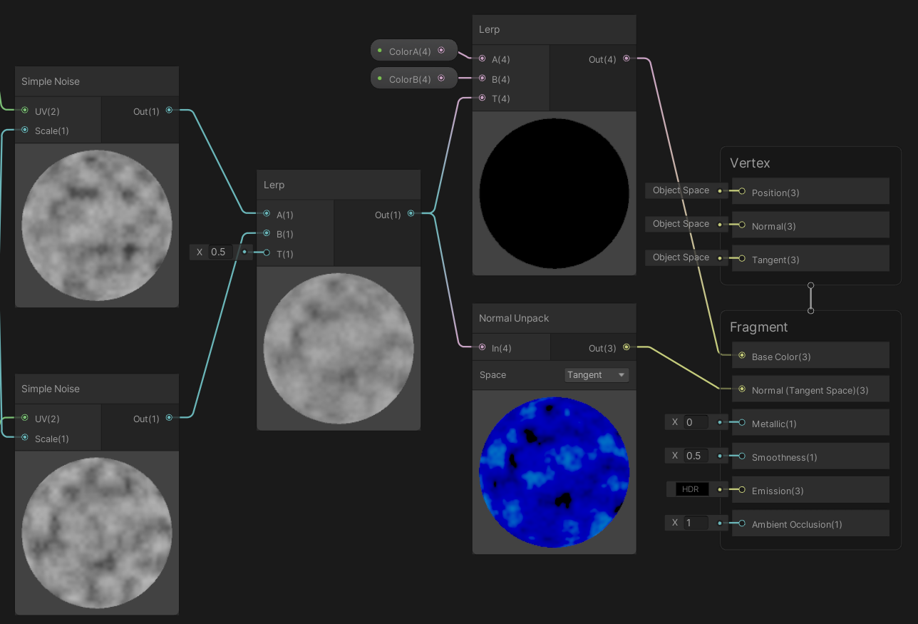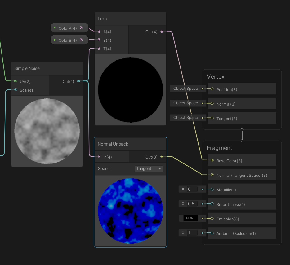 Noise 출력을 Normal Unpack에 사용하여 노말 값으로 넣어줍니다.